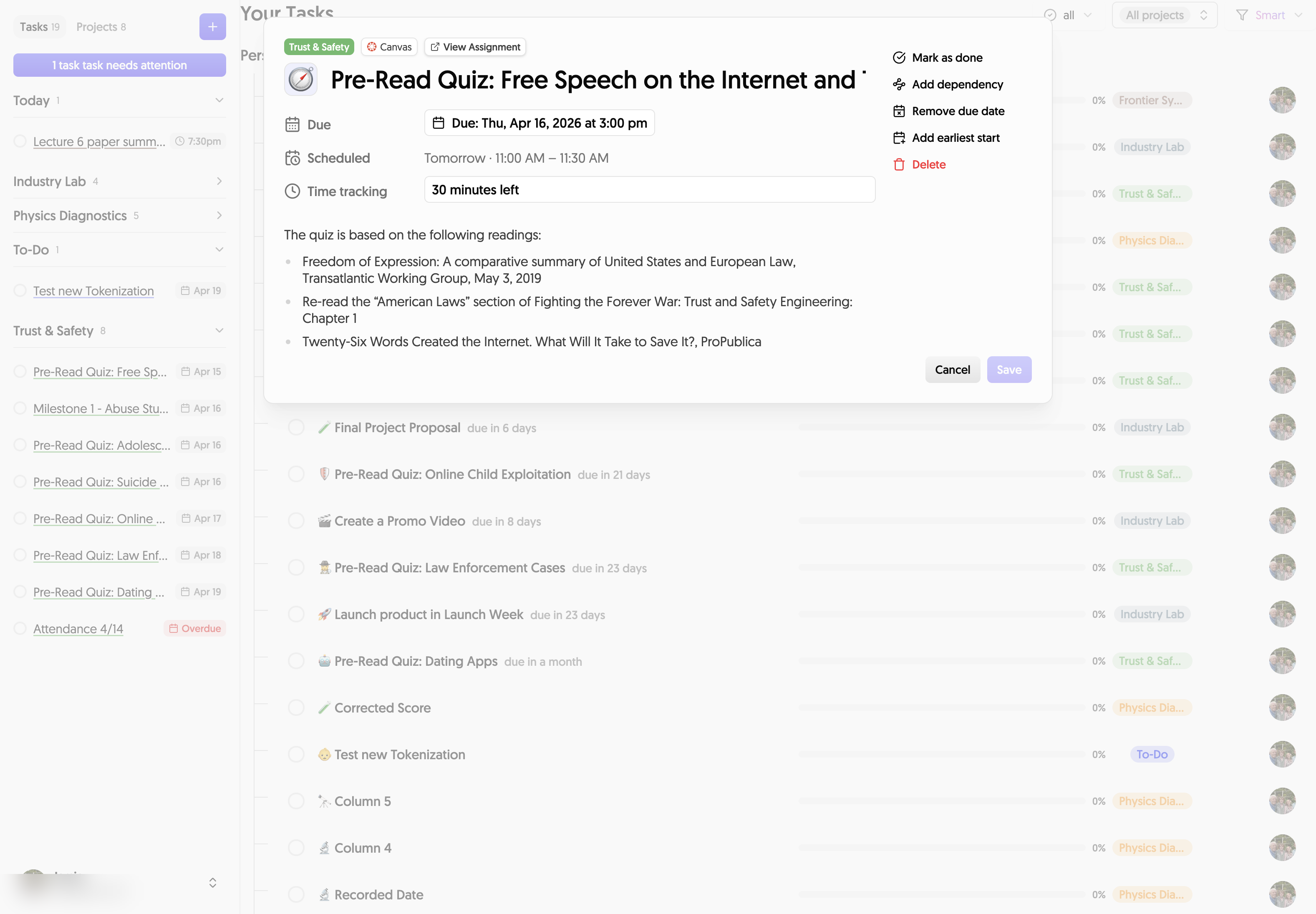 The app intuitively integrates my assignments and events, planning out my day by the hour, which I don't do myself.